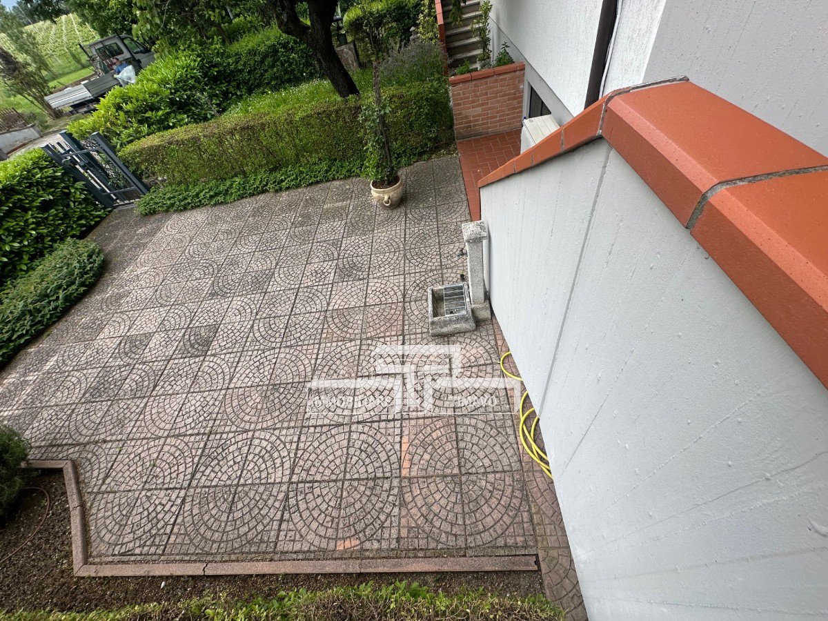 Elegante Villetta a schiera di ampie dimensioni completamente ristrutturata nel 2000 cosi composta: al piano rialzato un ampio soggiorno con camino, cucina, bagno, al piano superiore troviamo 2.5 camere da letto e un bagno, si prosegue al piano sottotetto con 2 ampie stanze e un bagno. Al piano seminterrato troviamo una spaziosa taverna, cantina, doppio garage in larghezza e giardino davanti e dietro - aria condizionata - inferriate- zanzariere- camino Zona verde e tranquilla adicente al parco e comoda a tutti i servizi principali